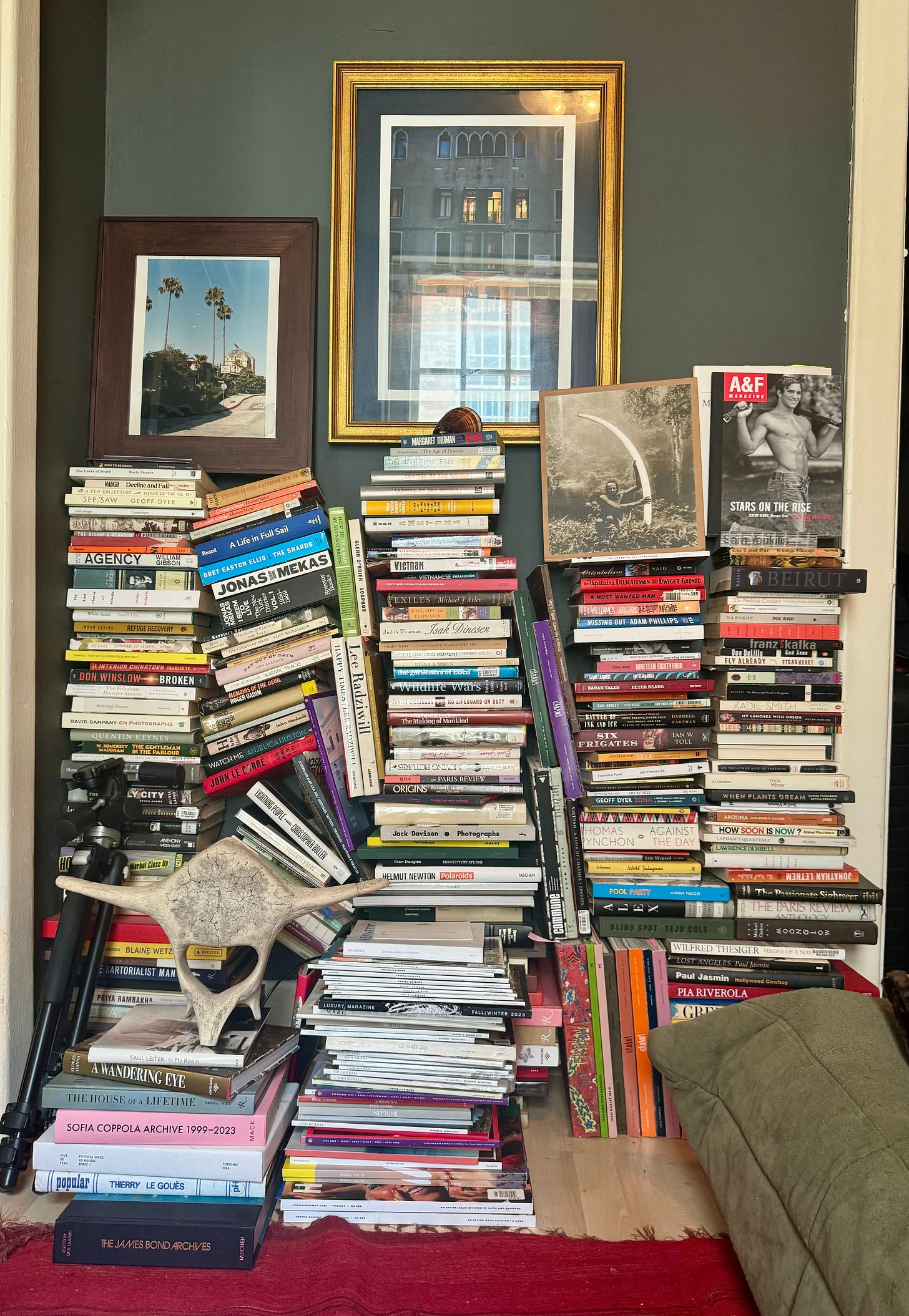 I often fantasize about the kind of home that can accommodate all of our potential selves, about closets that can hold everything from shearling snow boots to flip flops and opera pumps. About a library that holds all of the rereads we refer back to, everything underlined, dogeared, and annotated with our previous revelations, conversations with ourselves in the marginalia — along with everything we are in process with at the present, the nightstand stacks, and the research, the rabbit holes, and the lures toward whatever might haunt and entangle our imaginings next.